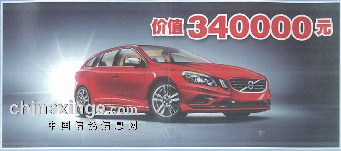 - 沃尔沃V60运动型车辆一辆或等值现金,(每羽参赛费2000元,限200羽,取1名)
