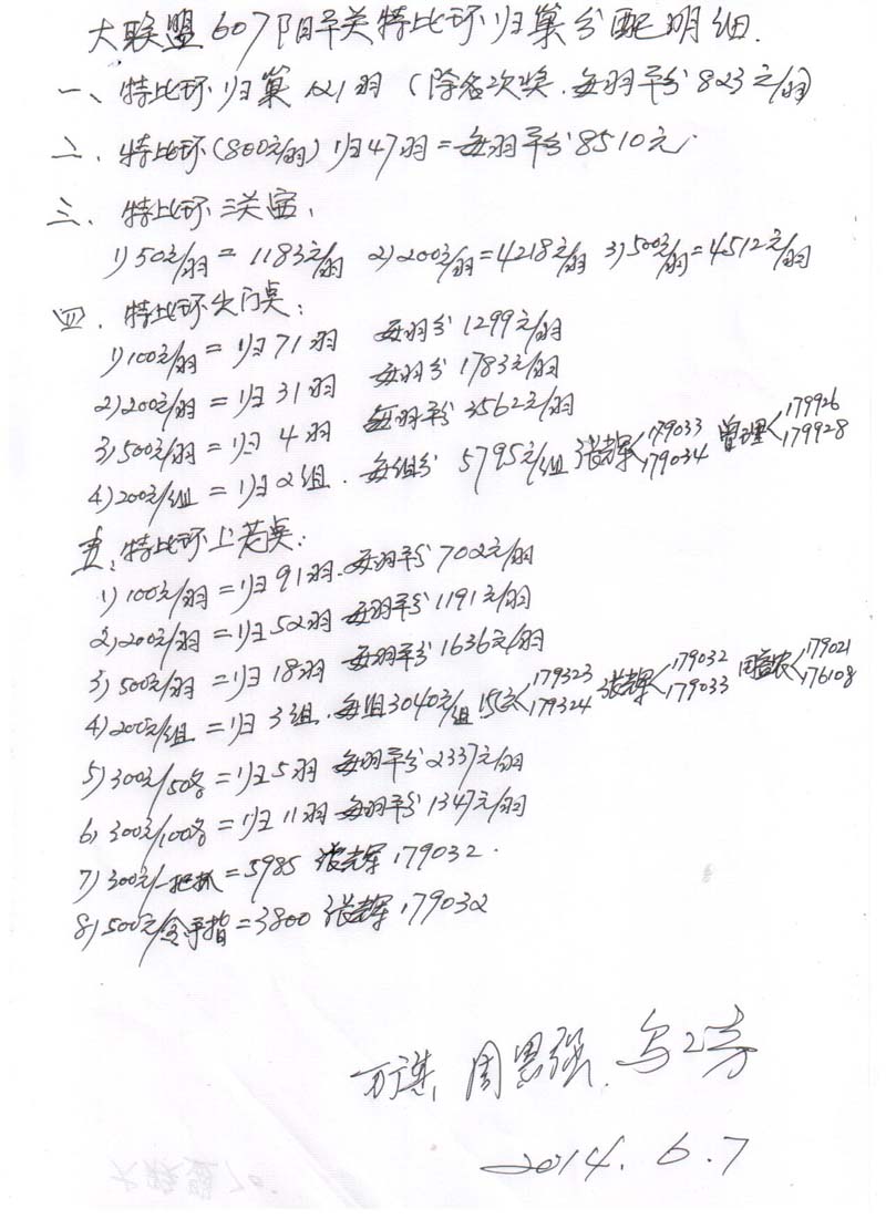 大联盟607阳平关特比环归巢分配明细