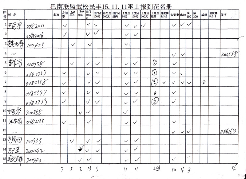 巴南联盟武松民丰巫山报到初步统计数据