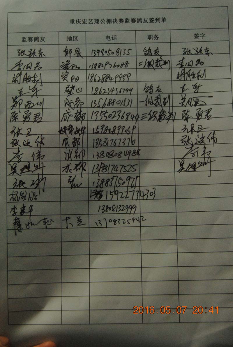 重庆市信鸽协会:王主席,陈主席,李主席,杨主席,唐主席