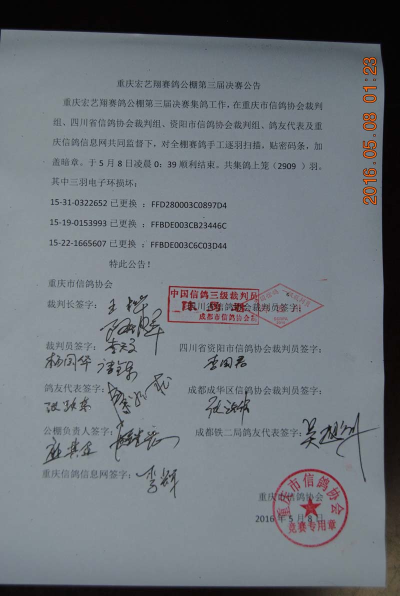 重庆宏艺翔赛鸽公棚2016年第三届决赛全程跟踪报道
