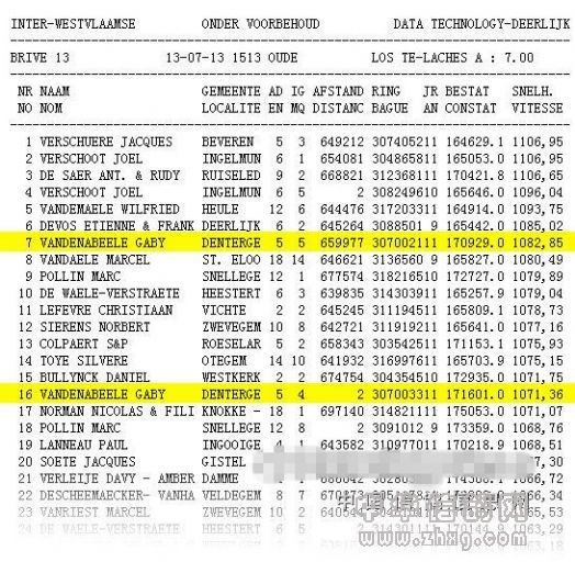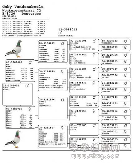 盖比·凡德纳比老鸽系再获2012年查特路国家赛一岁鸽组15894羽冠军