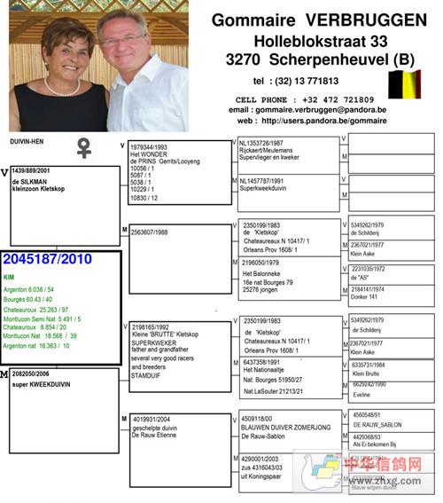 第一羽:足环号B10-2045187的"金姆"KIM历年赛绩如下: