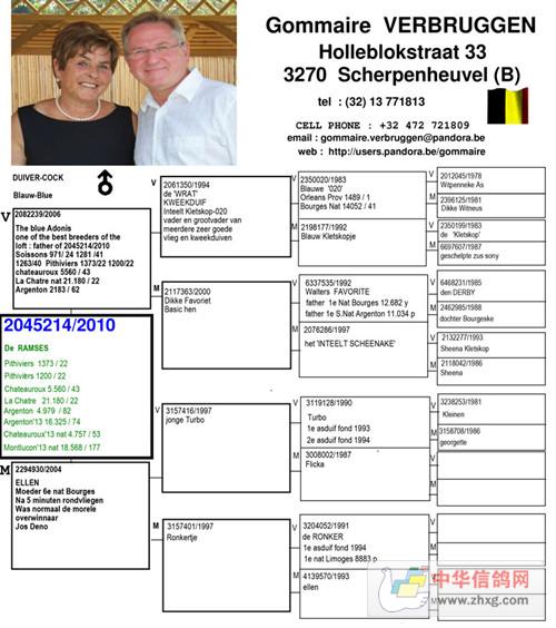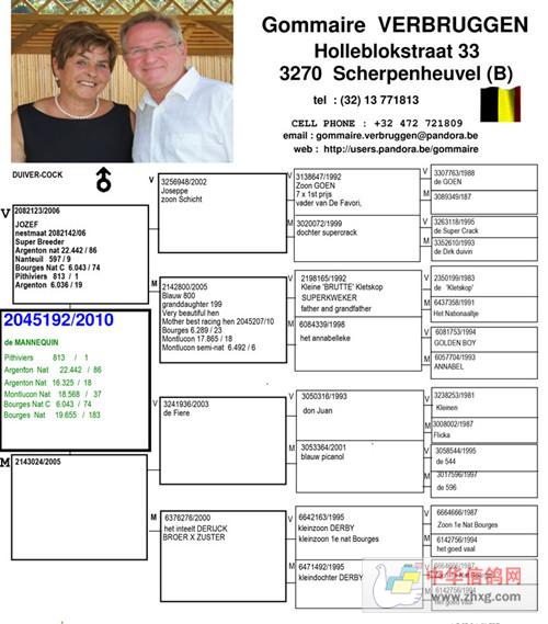 祖母 2563607/1998“秃头号“199/83,基础种雄,超级种鸽。子代获查特鲁10417羽1名,奥尔良省赛