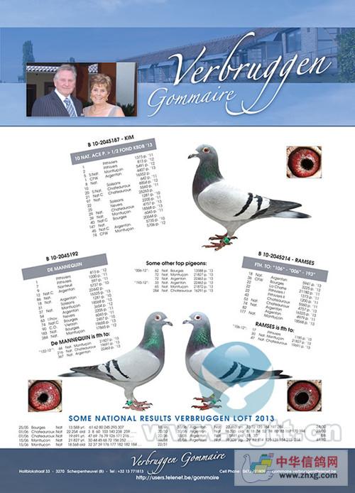 “美丽模特儿”DE MANNEQUIN 是足环号132-12鸽子的后代,且它在2013年获得的成绩如下: