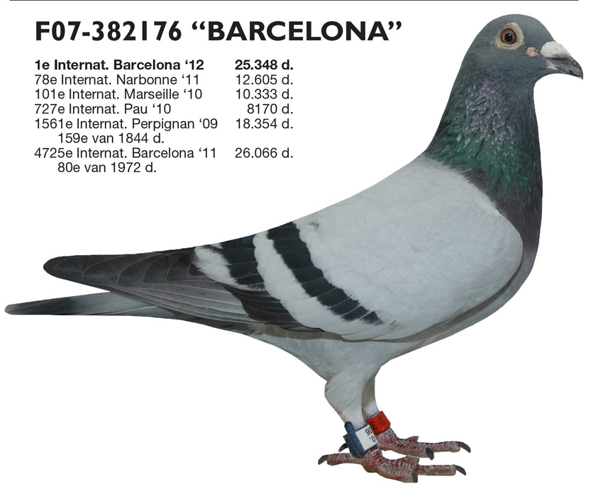 2012年巴塞罗那国际长距离大赛集鸽25348羽,于西班牙当地时间7月6日下午14时开笼。次日早晨,参赛鸽开始归巢报到,来自法国的Deu Philippe