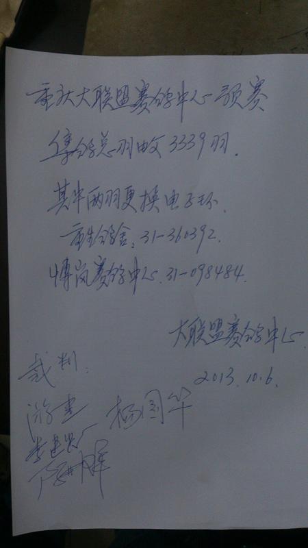大联盟赛鸽中心2013年预赛数据裁判签字