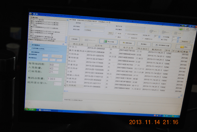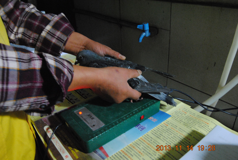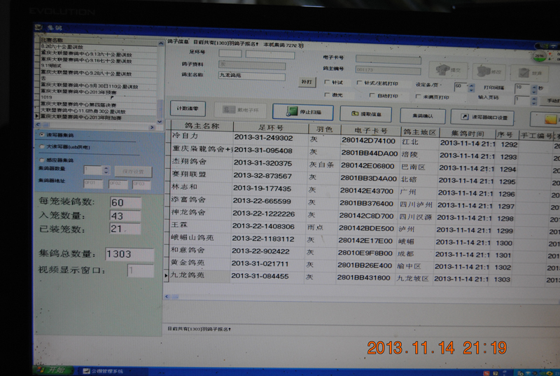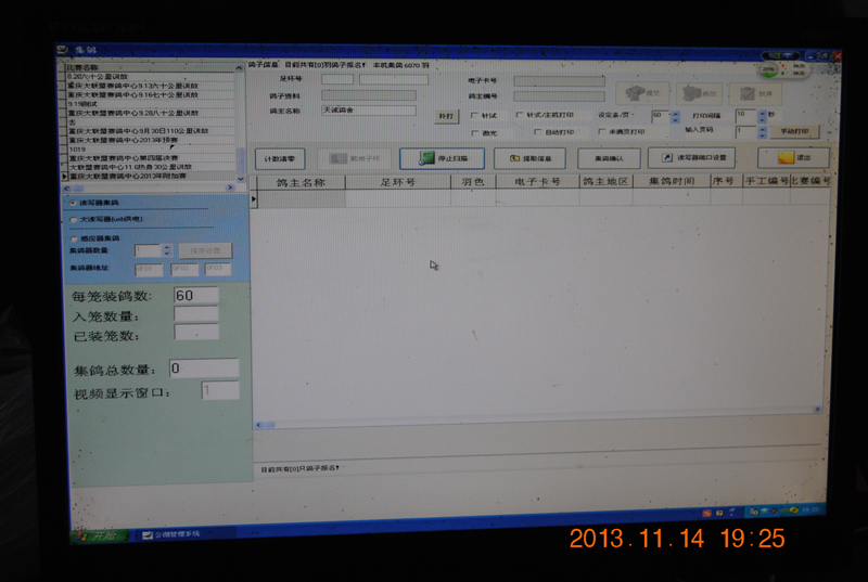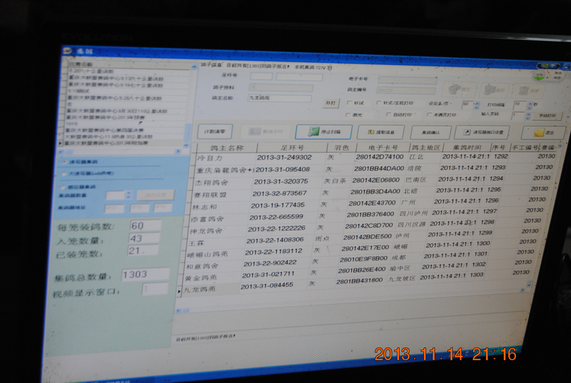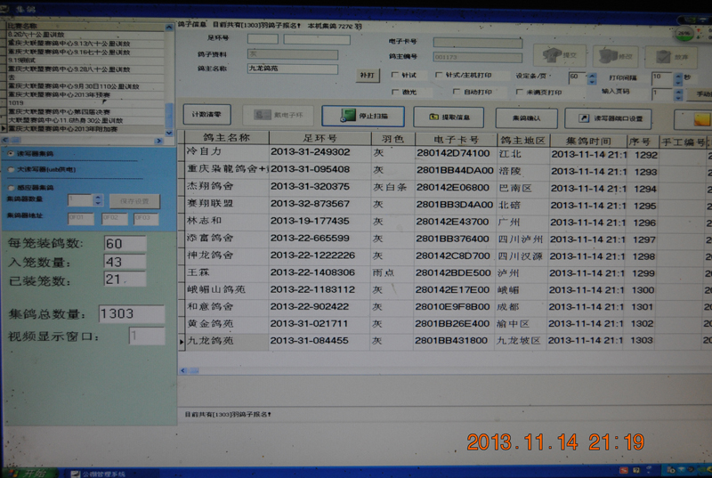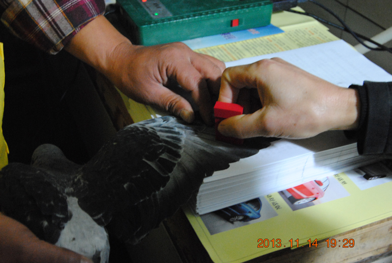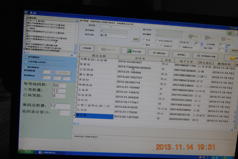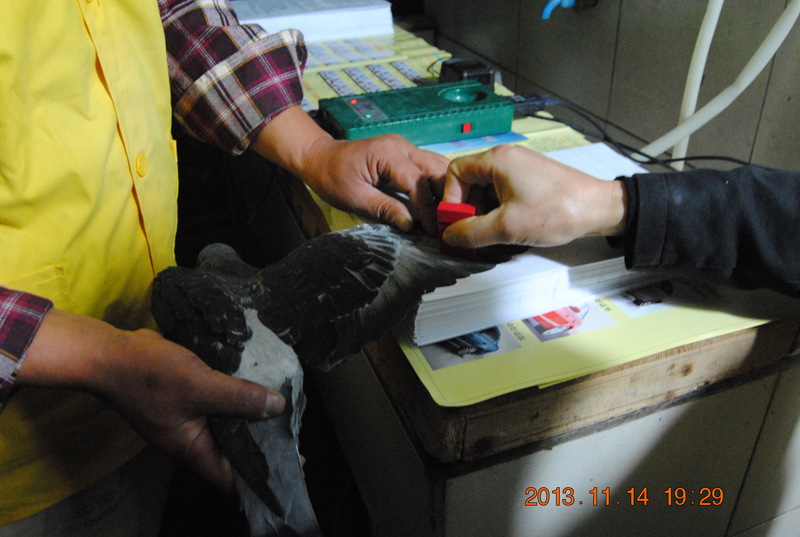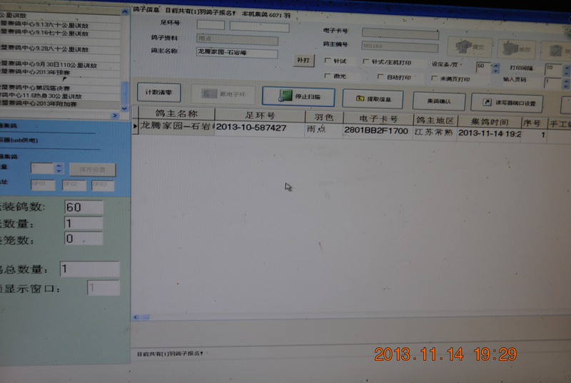 这时电脑上已经读取编号,第一只鸽子准备就绪