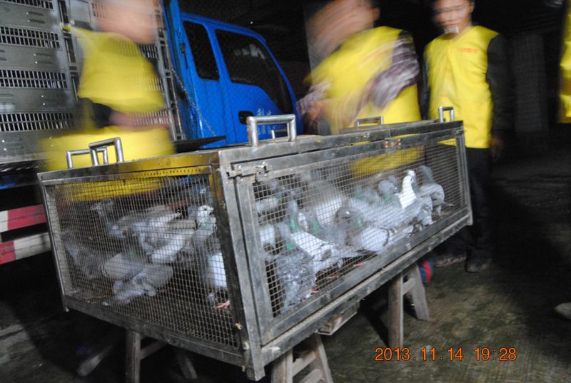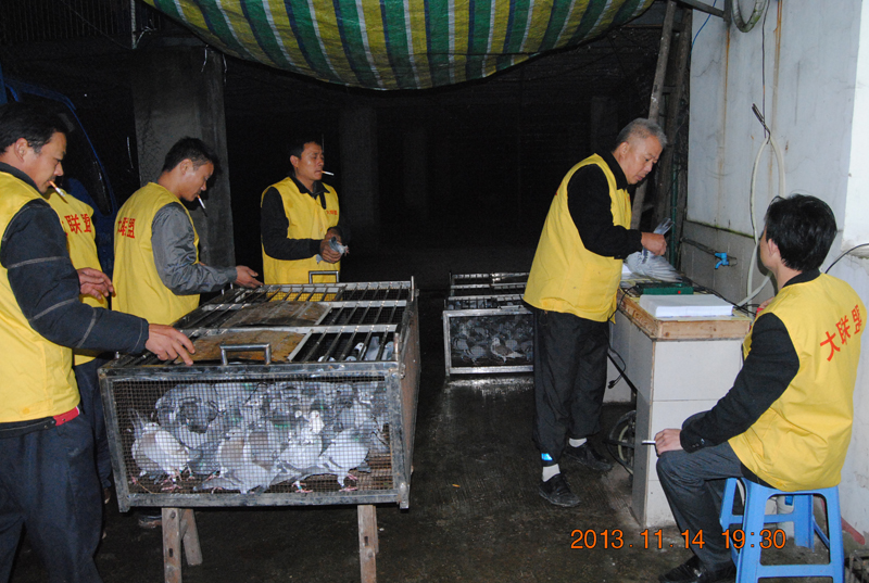 确认赛鸽全部上笼完毕