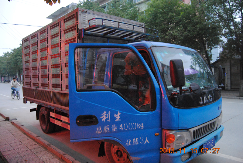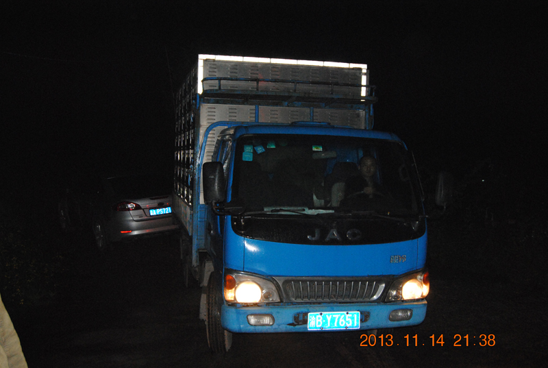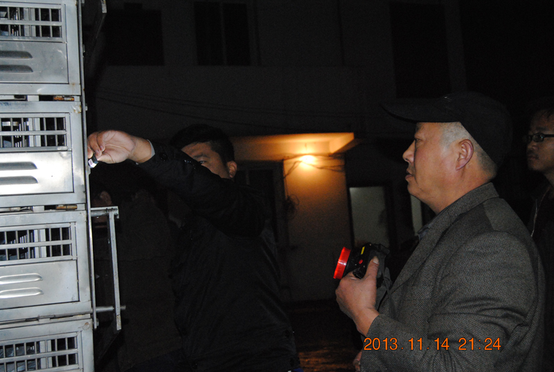 21点06分鸽子已经全部装上车,工作人员前往公棚查看