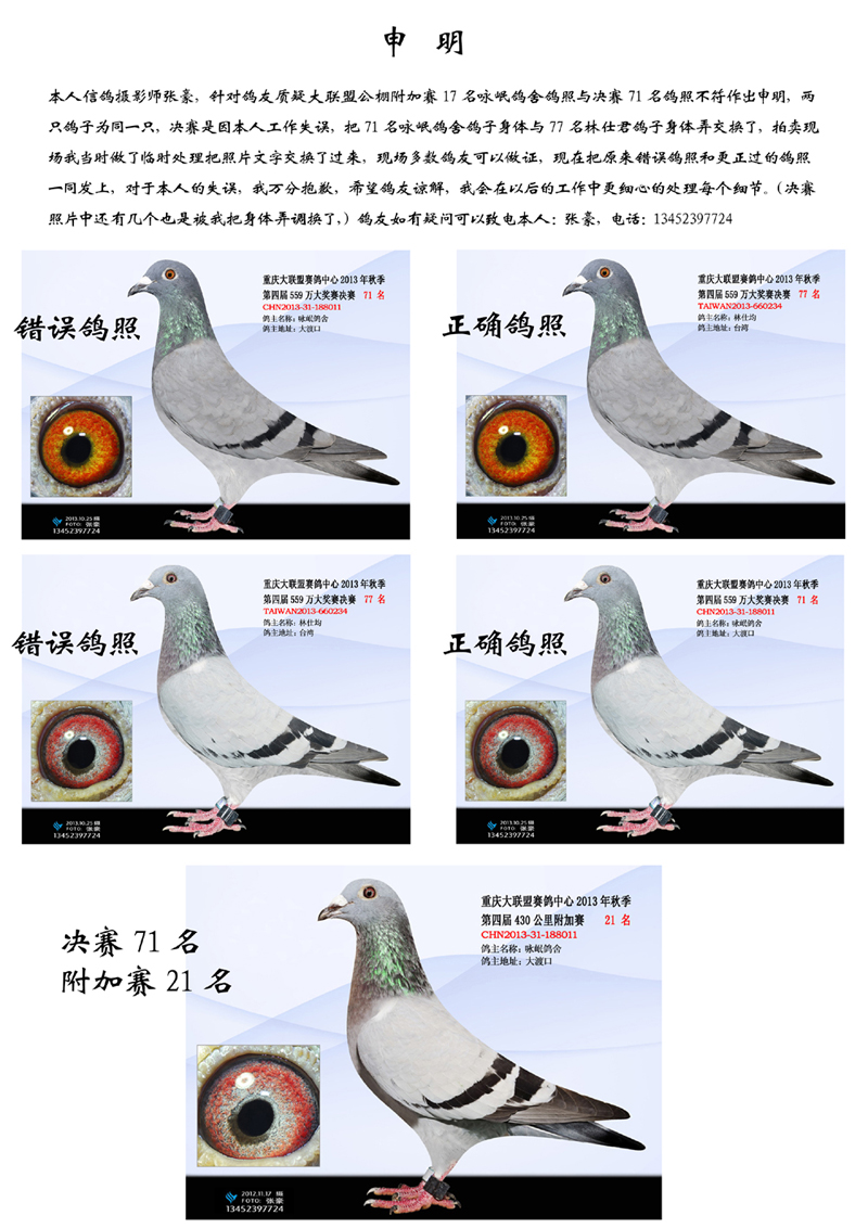 信鸽摄影师张豪对广大鸽友们的声明