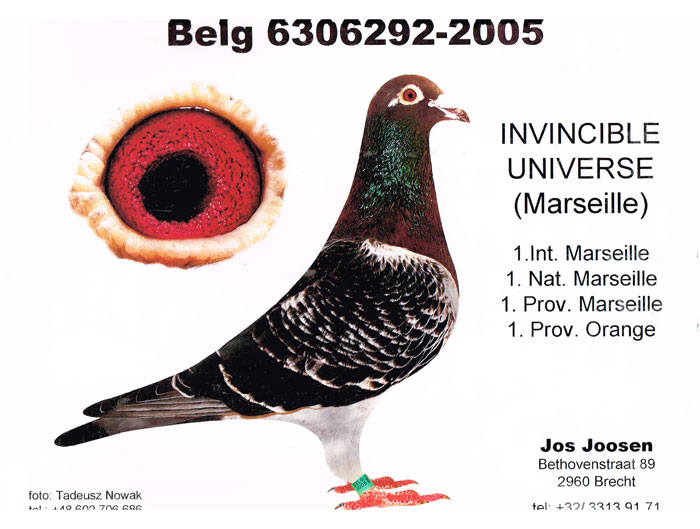 4月应是春暖花开的时节,但2013年4月的安特卫普省却还飘著缤纷的大雪,今天笔者到比利时强豪乔士.乔森的家,受到无比温暖的接待,乔士.乔森擅长中长距离,近年来在欧洲重要国家级赛事大放异彩,2006年荣获波品纳国际冠军(宇宙之钻),2010年入赏马赛国际冠军(宇宙无敌),宇宙无敌直女 (B07-6140081)于同年7月底入赏波品纳 15.857羽国际 48位,翔绩震撼国际鸽坛,是少数比利时鸽界同时赢得马赛国际冠军+波品纳国际冠军的传奇人物,2012年乔士.乔森宝刀未老再拿下蒙特利马国家赛冠军,鸽族强悍令人印象深刻。
