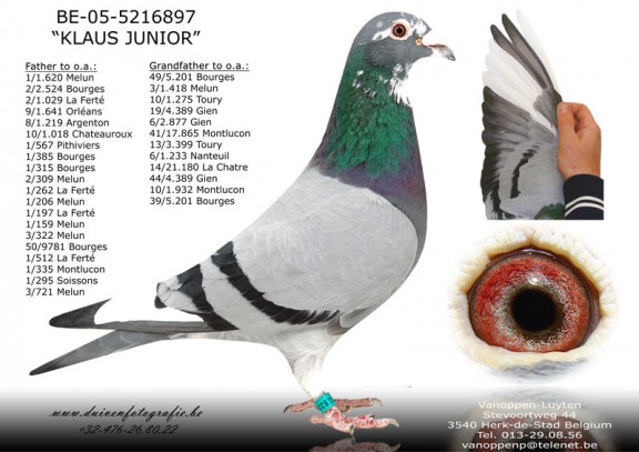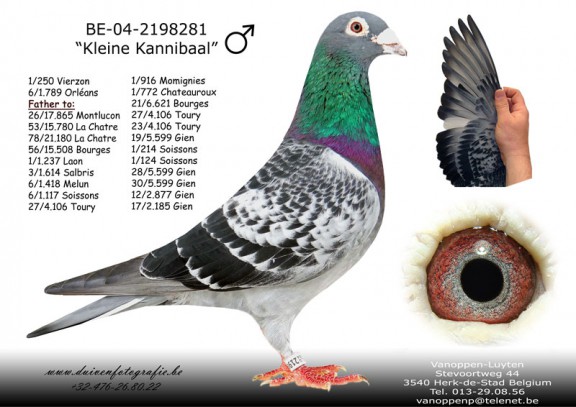 头号基础种雄是“小所向无敌”2198281/2004,从帕特利西亚.佛哈根处购得,现在是范欧鹏-鲁腾鸽舍的超级种鸽。它也是迪克.凡戴克“所向无敌”